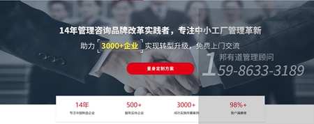 因此,想要借助管理咨詢實現精益生產管理的需求,還需要找專業管理咨詢公司的協助,只有在他們的協助之下,才能從根源上解決問題。若是貴司的產品遭受客戶投訴,且問題一直得不到解決的話,就直接搜索“邦有道管理顧問”一定是您最優選擇,或是直接撥打管理咨詢熱線:159-8633-3189。