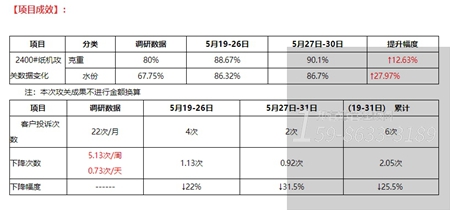 在找出原因,并提出具體的解決方案,就代表管理咨詢已經成功一半,但想要真正實現精益生產管理咨詢,推動生產產量,還需要造紙廠各個員工進行配合。在大家完美配合之前,推動紙機克重以及水份執行,就比如2400#紙機攻關數據變化:克重直接提升12.63%、12.63%提升幅度達到27.97%,就連客戶投訴次數在短時間內下降25.5%。